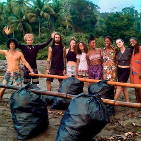 Our remote location makes it such that we often rely on material from the area - we use natural resources to build with (bamboo, washed up wood, etc.) and we love utilizing the plastic found during beach cleanups for creative projects.